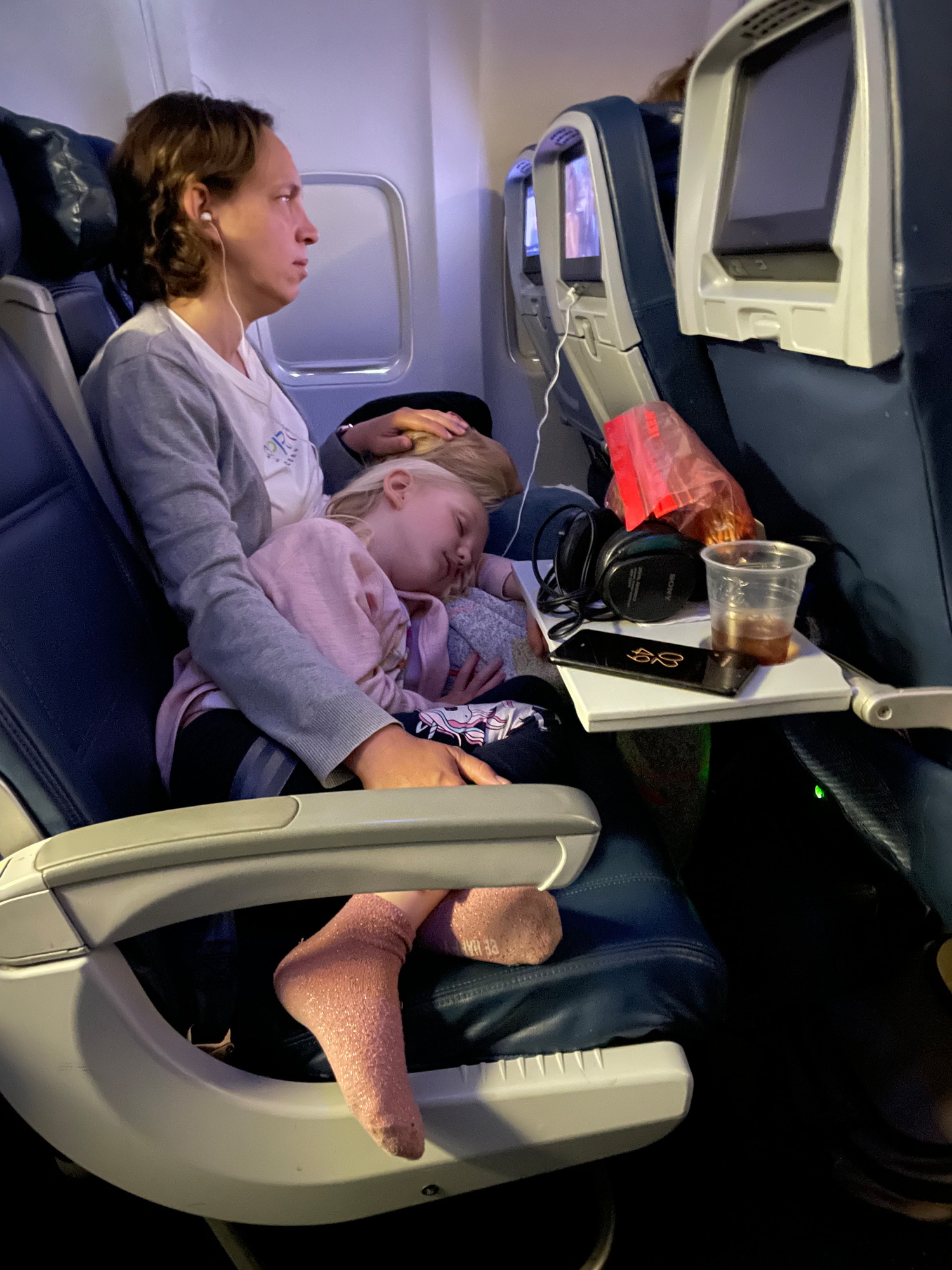 Det blev et kort besøg i Seattle - men ikke desto mindre et meget hyggeligt besøg. Kl. 12 indfandt vi os påny i lufthavnen, og ved 15-tiden lykkedes det endelig at få vingerne i luft med kurs mod Hawaii. Flyveren såvel som tiden fløj afsted, for ungerne tog sig begge en lur på over tre timer, og snart kunne vi ud af den runde rude skimte de øer, som vi har snakket om i årevis og i særdeleshed i månedsvis. Begejstringen steg til nye højder, nu da målet endelig manifesterede sig i noget så håndgribeligt som synlige vulkaner, hvide sandstrande med palmer og meget blåt vand.