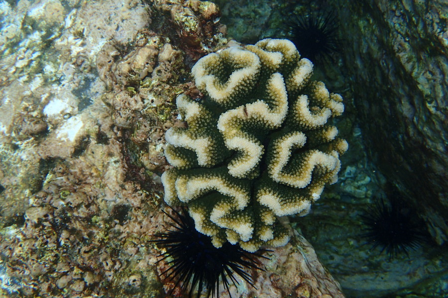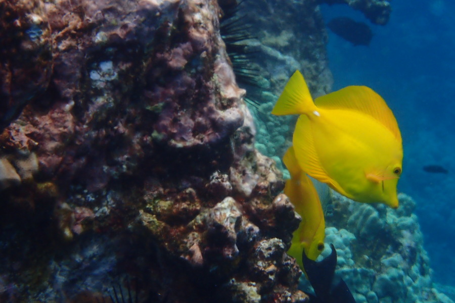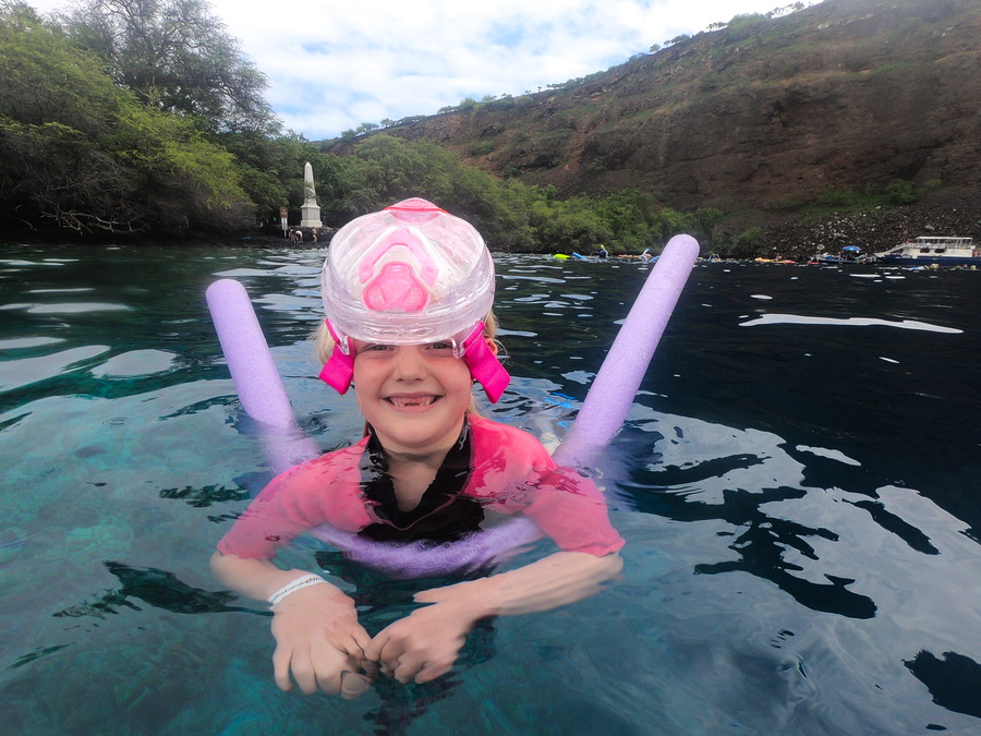 Tilfældigvis er Kealakekua Bay også et godt sted at snorkle. Der er farverige koraller og flotte fisk - og god sigtbarhed da vi var der.