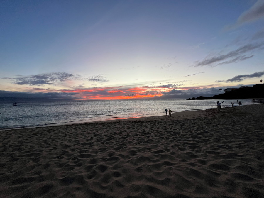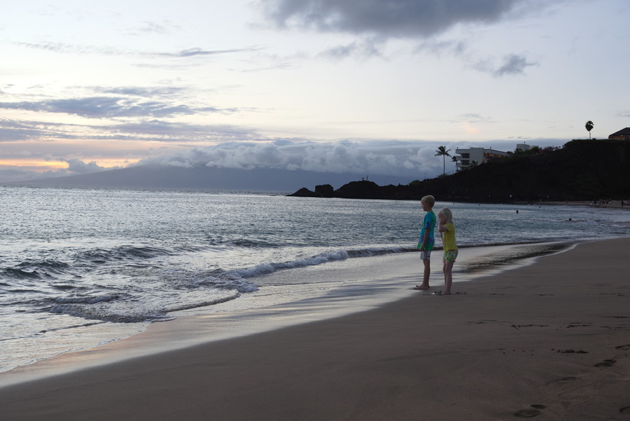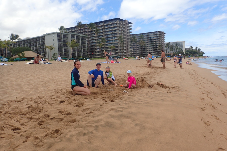 Den første hele dag på Maui indbød ubestrideligt til strandtur med det hele. Vi lejede et boogie board og kastede os ud i bølgerne (og sandet) til stor fornøjelse for både deltagere og tilskuere. Man skal lige lære at læse bølgerne.